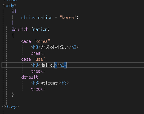 Razor에서는 if, for, switch 같은 제어문도 @를 붙여 그대로 사용할 수 있다.