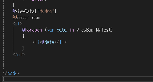 - ViewBag은 동적이라 오타 나도 런타임에서 에러